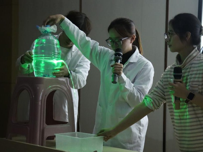 “我们不只是展示实验,更希望孩子们感受到科学就在触手可及的生活里。”主讲学生袁劲豪说道。为实现这一目标,科普团队在课前进行了近一个月的集体备课,从实验设计、教具制作到讲解话术,均围绕小学生的认知特点精心打磨,构建“现象—提问—揭秘—应用”的沉浸课堂路径,将抽象的光学原理转化为可触可感的趣味体验。